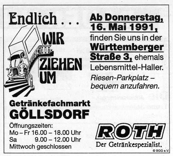 Anzeigen Göllsdorfer Geschäfte und Wirtshäuser 1991